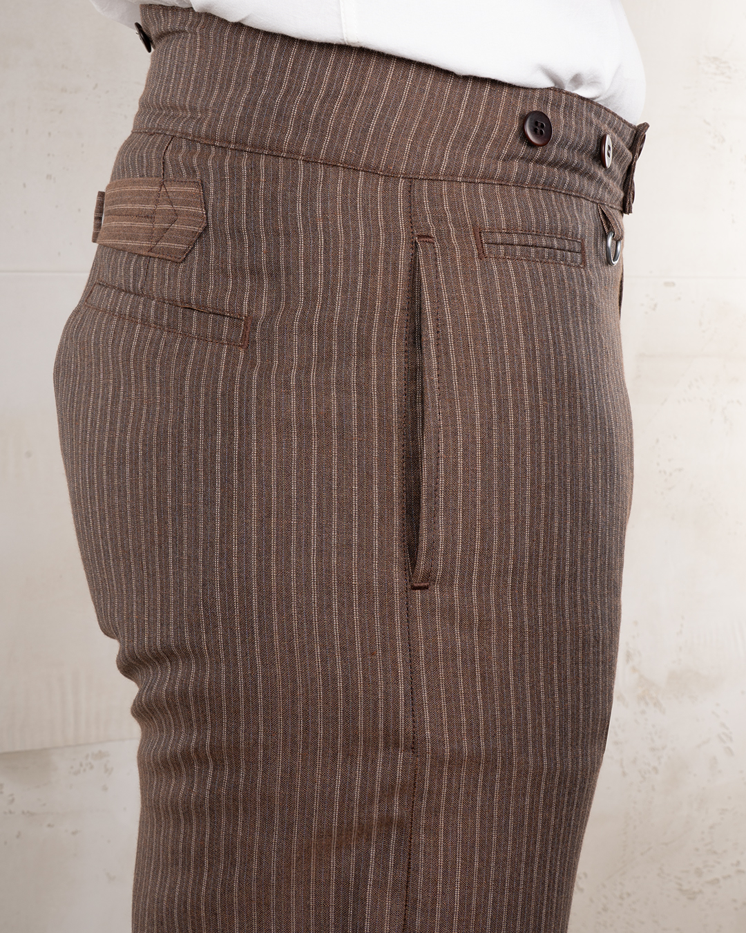 Unsere beliebte 1905 Hauler Pant in einer leichten Sommervariante. Der Stoff besteht aus 50% Wolle und 50% Leinen und wird von uns in Portugal gewebt.