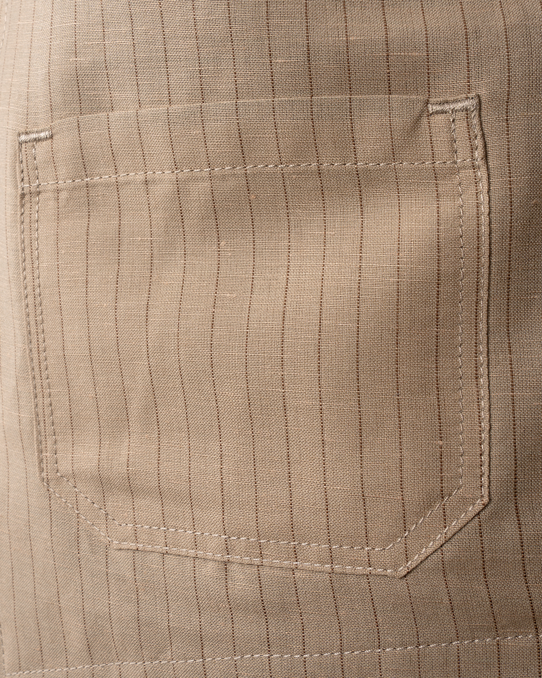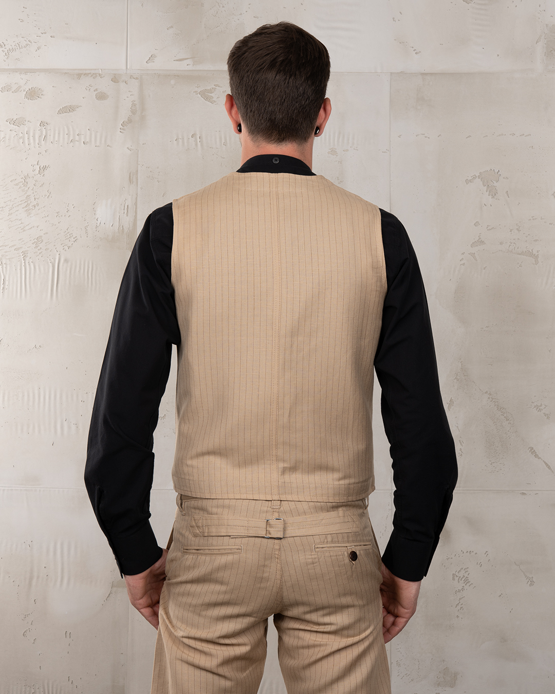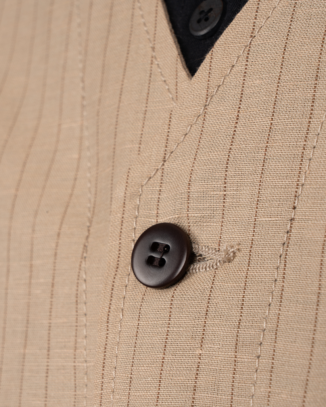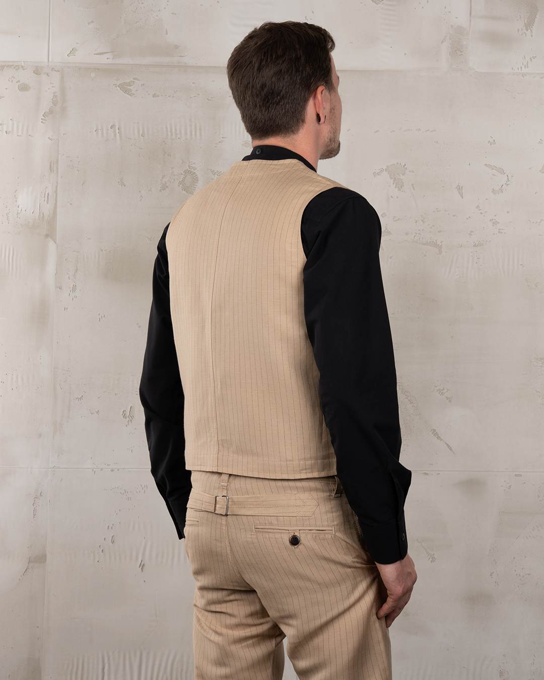 Unsere 1937 Roamer Vest in einer leichten Sommervariante. Der Stoff besteht aus 45% Wolle und 55% Leinen und wird exklusiv für uns in Portugal gewebt. Er ist angenehm zu tragen und bietet eine elegante Optik.