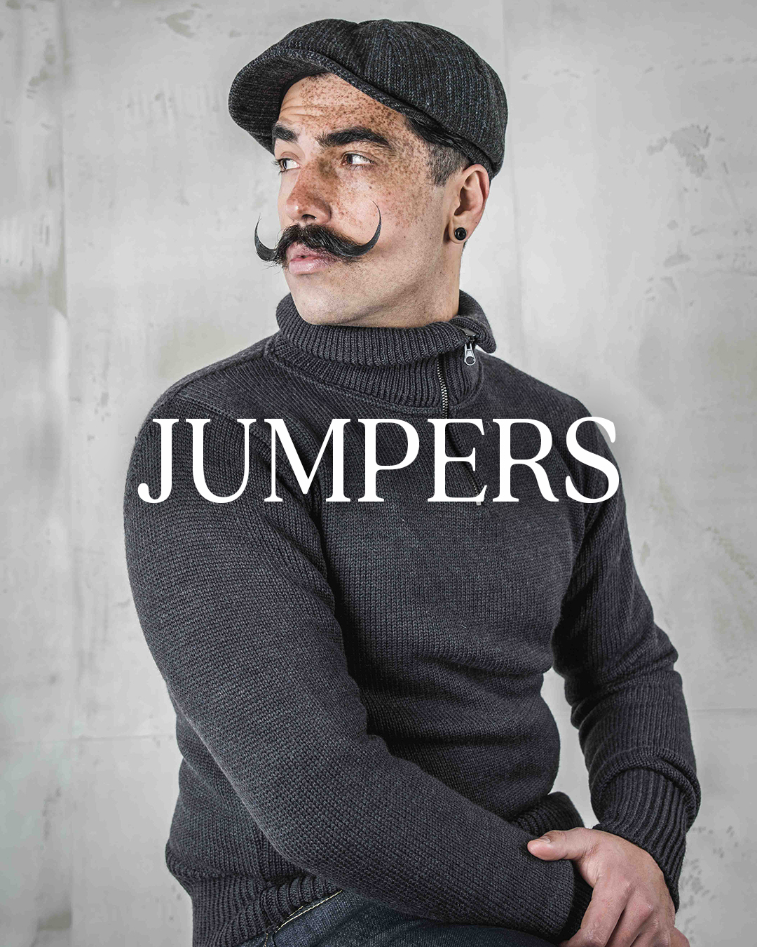 Pike Strickpullover werden aus hochwertiger Merinowolle gefertigt, die von der renommierten italienischen Garnspinnerei Tollegno stammt. Es sind drei klassische Modelle erhältlich: ein Troyer, ein Rollkragenpullover und ein Seaman Sweater, der ursprünglich von der US Navy getragen wurde.