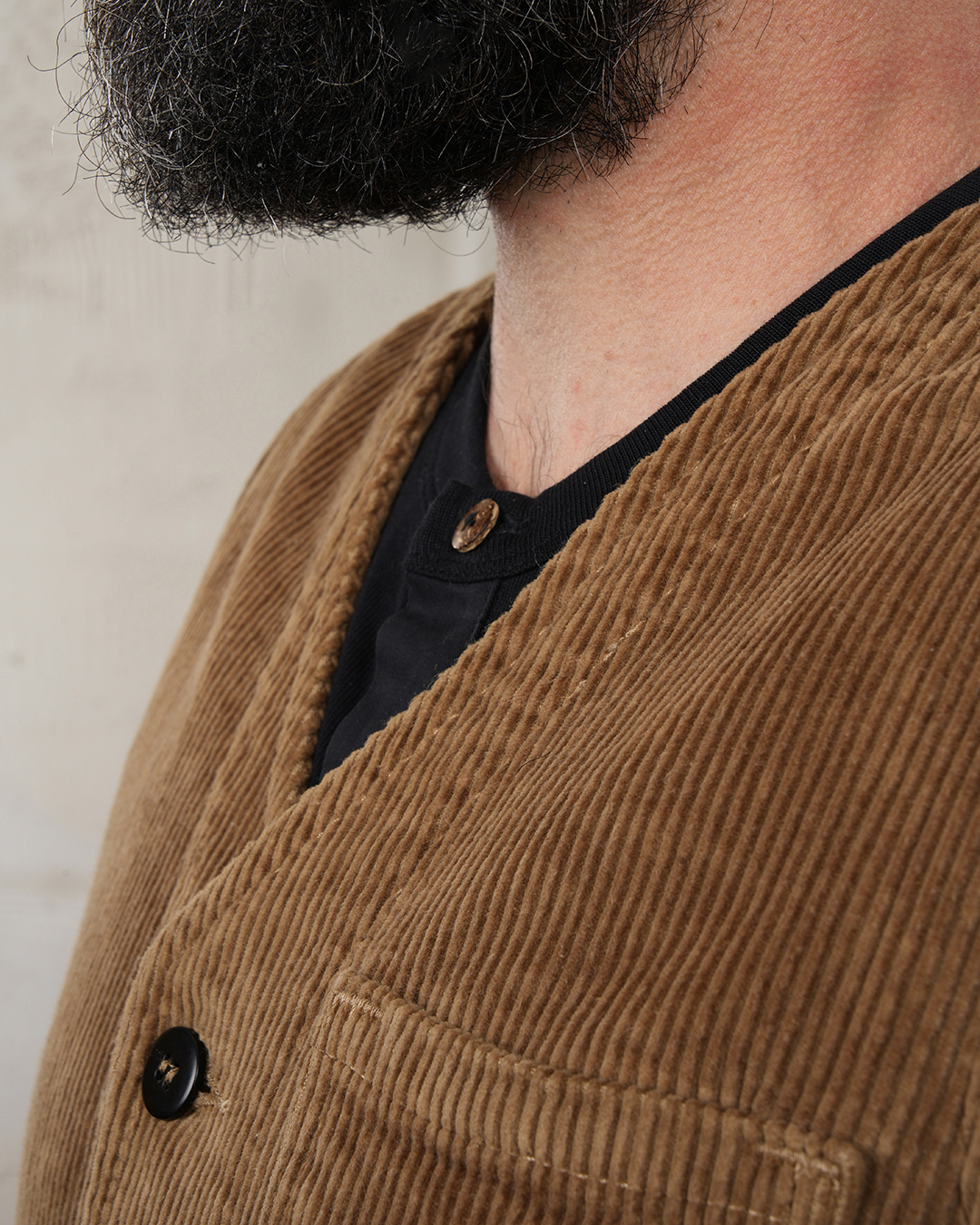 Discover the corduroy version of our 1937 Roamer Vest, made from 100% organic cotton. This waistcoat has its roots in the early 20th century in the USA, where it was originally worn by railway workers.