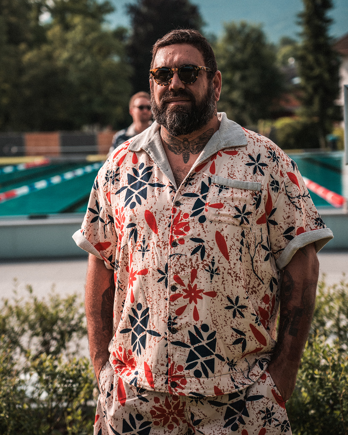Our 1961 Cabana Shirt is made with a nice viscose out fabric printed with an authentic pattern and is lined with a cosy frotee lining. So just perfect you throw it on after your dive in the pool or the sea. We also offer the matching shorts for your perfect color combination.